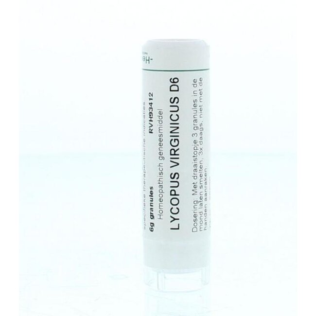 Opte por Homeoden Heel Lycopus virginicus D6, un remedio homeopático para usted y su familia, aplicado según los principios homeopáticos. Una elección consciente a través de VitAdvice para una salud fiable. Disuelva 3 gránulos, 3 veces al día. Consulte a un médico o terapeuta antes de usar.