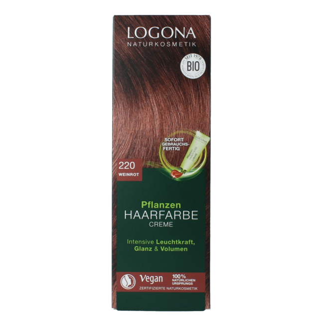 ¿Busca un cabello burdeos radiante sin daños químicos? La Logona Color Crema 220 Burdeos es su solución 100% natural y vegana. Obtenga un color permanente que nutre y aporta brillo. Una elección consciente y sin plásticos a un precio justo. Confíe en VitAdvice para lucir un aspecto espléndido.