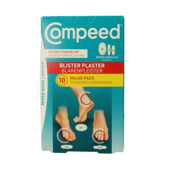 Este práctico pack mixto de apósitos para ampollas COMPEED® contiene diversos tamaños para cada tipo de ampolla: