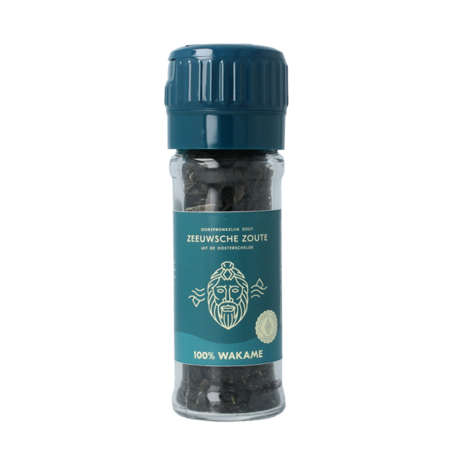 Zeeuwsche Zoute Wakame es una combinación de Sal Pura Zeeuwsche Zoute y algas marinas, procedentes del Oosterschelde. Una combinación típicamente de Zelanda con el sabor de la región.