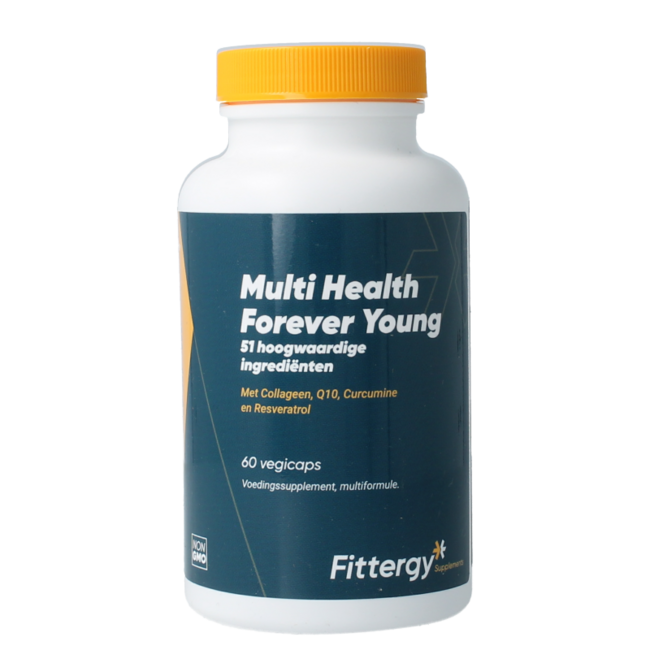 Multi health forever young transforma tu bienestar con 51 ingredientes de alta calidad, incluyendo colágeno y Q10. Imagina despertarte cada día con un enfoque claro y una piel radiante. Esta fórmula con base científica ha sido desarrollada específicamente para apoyar de forma óptima tu cuerpo y mente durante el envejecimiento.