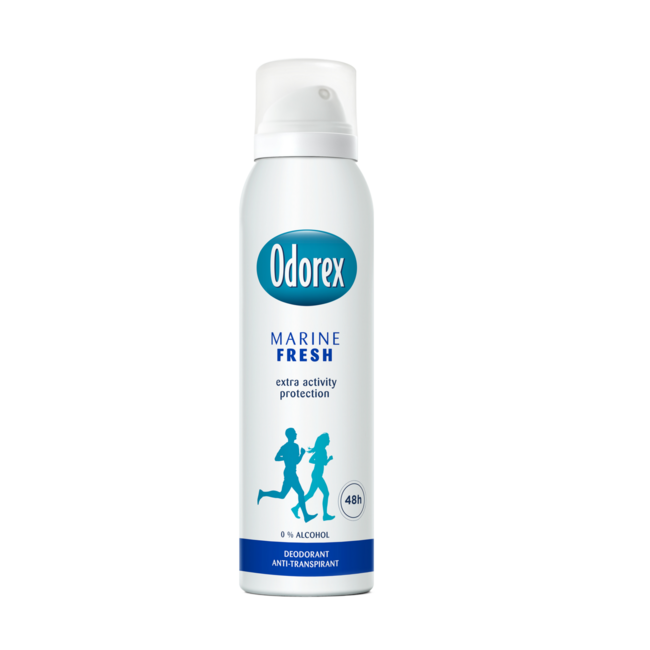 ¿Quiere evitar el sudor inesperado? El spray Odorex Marine Fresh reactivo al calor corporal ofrece 48 horas de frescura activa y adaptable, actuando justo cuando el cuerpo lo necesita. Esta fórmula suave sin alcohol está dermatológicamente testada y es apta para toda la familia.