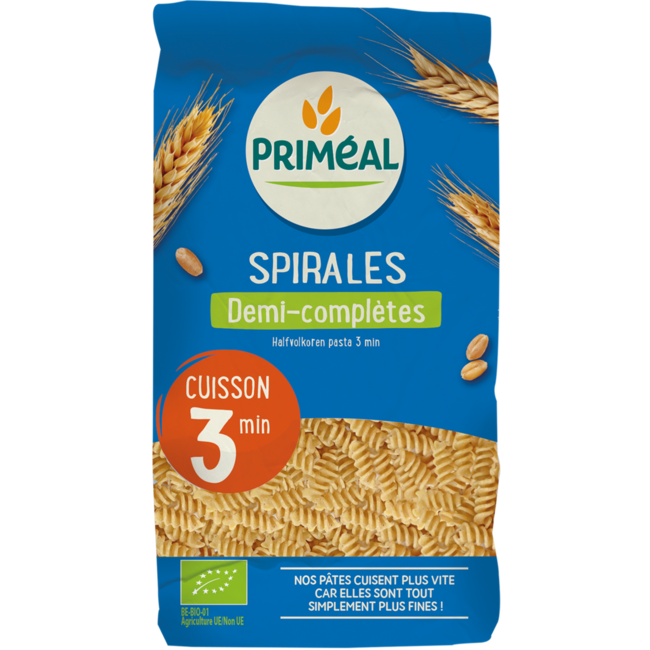¿Poco tiempo para comer sano? ¡Las espirales semi-integrales ecológicas de Primeal se cocinan en solo 3 minutos! Disfrute rápidamente de una comida nutritiva, ideal para toda la familia. Una elección inteligente y económica de VitAdvice: calidad y sostenibilidad. ¡Disfrutar es así de sencillo!