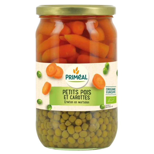 guisantes y zanahorias ecológicos de Primeal ofrecen naturaleza pura y comodidad. Listos rápidamente, son ideales para toda la familia. Calidad seleccionada por VitAdvice para un estilo de vida vital, con envío sostenible. ¡Su elección saludable!