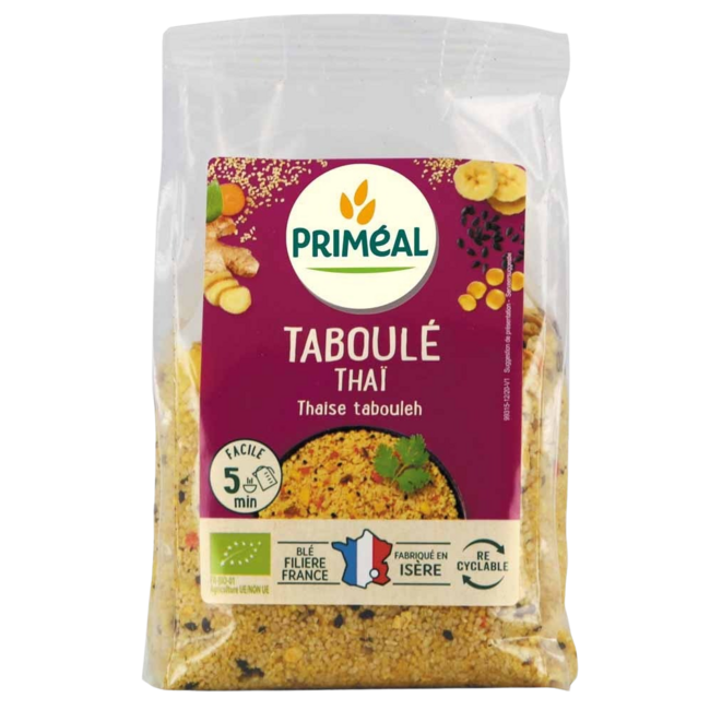 Descubra Primeal Tabulé Tailandés Bio: en solo 5 minutos podrá servir en la mesa una exquisitez exótica y ecológica. Con sorprendentes notas de jengibre, plátano dulce y sésamo, este es un viaje culinario que potencia su vitalidad.
