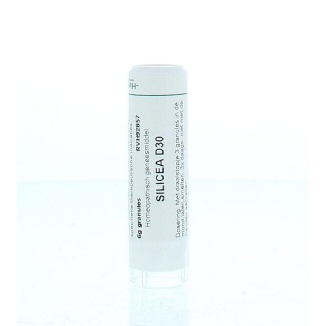 Para quienes optan por la homeopatía, ofrecemos Homeoden Heel Silicea D30. Este medicamento homeopático no tiene una indicación específica y se utiliza siguiendo los principios homeopáticos. Contiene Silicea D30 y sacarosa. Disuelva 3 gránulos en la boca tres veces al día; evite el contacto con las manos.