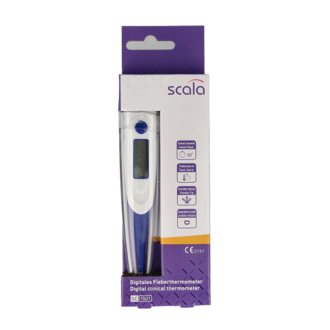 ¿Le preocupa la fiebre? Con el termómetro digital Scala SC 1501 obtendrá resultados claros al instante. Ofrece una medición rápida con alarma de fiebre y punta flexible para mayor comodidad, incluso en niños. Confíe en la precisión avalada por los expertos de VitAdvice. Una elección inteligente, económica y responsable para toda la familia.