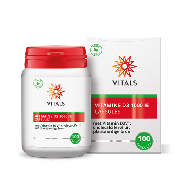 ¿Sientes falta de vitalidad? Vitals Vitamina D3 1000 UI refuerza el sistema inmunitario, los huesos y los músculos. Esta vitamina D3 vegana contribuye a la renovación celular. Con VitAdvice inviertes de forma inteligente: calidad premium, un 30 % más económico y sin plásticos. Una elección de confianza para toda la familia. ¡Recupera tu vitalidad!