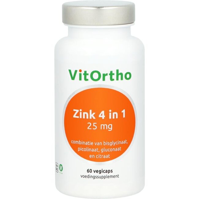 VitOrtho Zinc 4 en 1 es una potente combinación de 4 compuestos de zinc de unión orgánica para una óptima absorción.