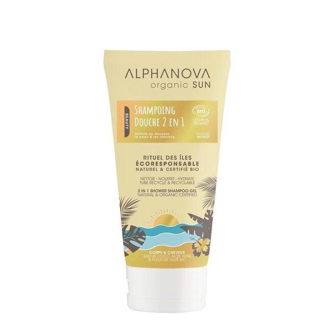 Après une journée de soleil, de mer ou de chlore, votre peau tiraille et vos cheveux sont rêches ? Le Shampoing Douche 2-en-1 Alphanova Sun nettoie en douceur tous les résidus de sel, de sable et de crème solaire. Profitez immédiatement d'une peau douce et de cheveux faciles à démêler, avec un délicieux parfum estival. Sans irritation, pour une hydratation profonde.