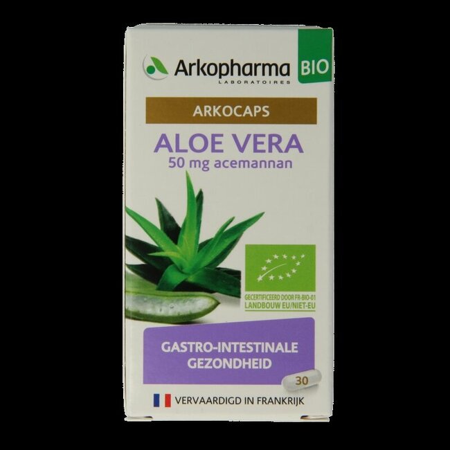 IngrédientsPoudre de suc* de feuille d'Aloe Vera BIO (Aloe barbadensis), épaississant : gomme d'acacia BIO, amidon de maïs BIO, fibres de pomme BIO (Malus domestica), gélule 100 % végétale : hydroxypropylméthylcellulose.