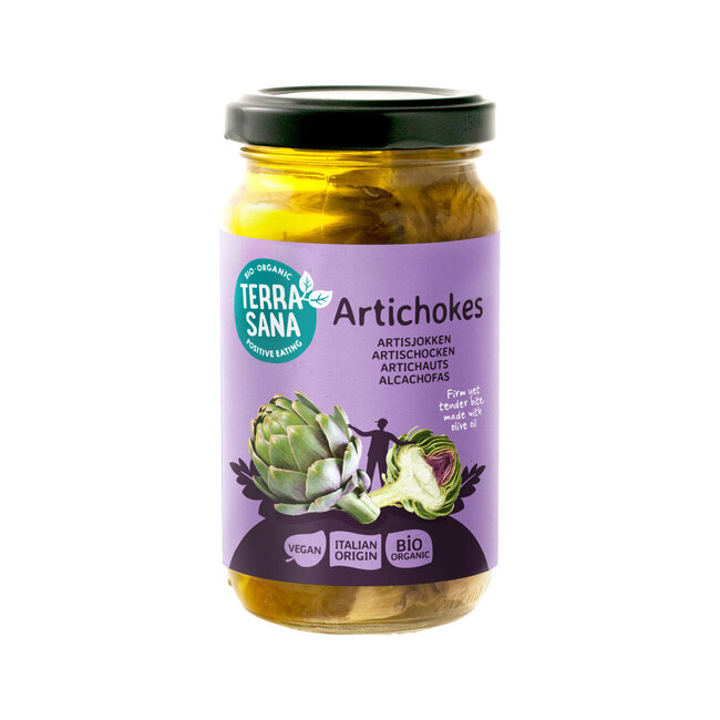 artichauts* 60%, huile d'olive extra vierge*, vinaigre de cidre*, sel marin