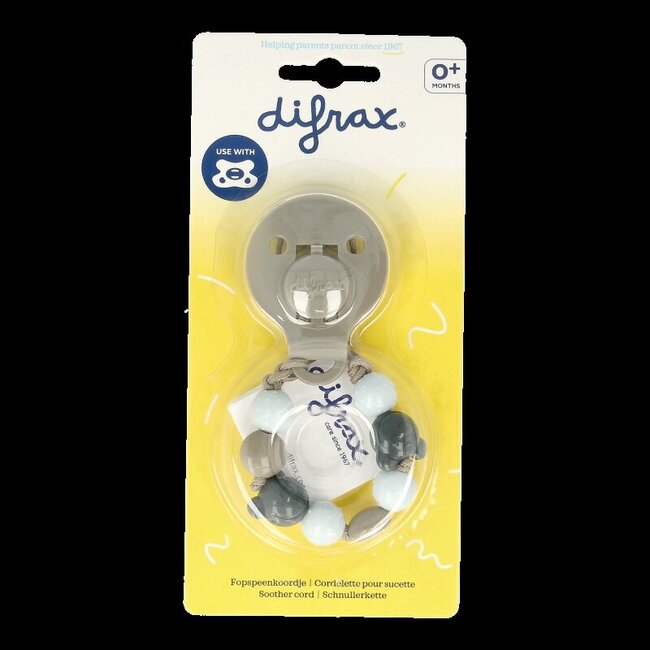 Découvrez l'attache-sucette à perles Difrax, la solution ingénieuse qui apporte calme et commodité à votre quotidien. Fixez simplement le cordon aux vêtements de votre enfant pour que la sucette reste toujours sécurisée, propre et à portée de main. Vous profitez d'une tranquillité d'esprit, sachant que vous choisissez un produit fiable conçu spécifiquement pour la sécurité et le confort de votre enfant.
