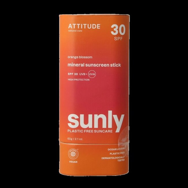Découvrez le Attitude Sunly stick solaire SPF30 fleur d'oranger. Ce stick solaire minéral à l'oxyde de zinc non nano offre une protection à large spectre contre les rayons UVA et UVB sans nuire aux océans. Pas de voile blanc, pas de sensation grasse, seulement une protection simple et fiable. Le tout dans un stick pratique sans plastique, idéal pour les déplacements : un choix conscient pour vous et l'environnement. Votre peau est confortable, protégée et soignée, sans compromis.