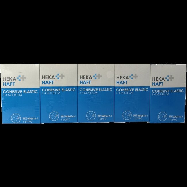 Fini les pansements qui glissent ! La **bande cohésive Hekahaft** (4m x 8cm, 5 pièces) assure une fixation confortable et fiable. Cette bande sans latex adhère uniquement sur elle-même, pas sur votre peau ou vos cheveux, offrant une liberté de mouvement optimale et un soutien respectueux de la peau. Favorisez votre rétablissement avec cette bande respirante et absorbante, idéale pour toutes les parties du corps.