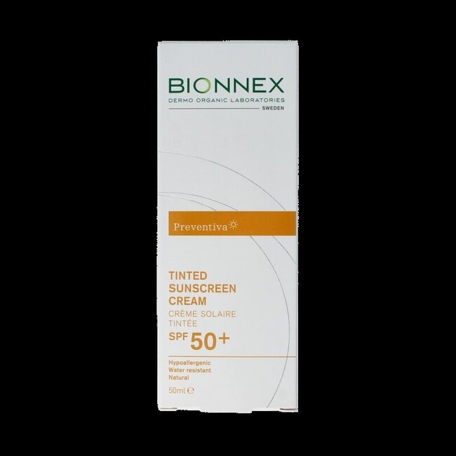 Avec la Bionnex Preventiva Solaire Teintée SPF50, vous bénéficiez du meilleur des deux mondes. Cette protection solaire teintée intelligente offre un large spectre SPF50 contre les rayons UVA/UVB et les radicaux libres. Elle camoufle également instantanément les taches cutanées, les capillaires éclatés et les grains de beauté. Le résultat est un teint immédiatement unifié et éclatant, sans compromis. Grâce à des ingrédients absorbants (farine de graines d'Hordeum vulgare), votre peau reste agréablement mate et non collante, même lors des journées les plus chaudes. Convient à tous les types de peau !