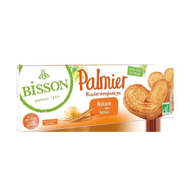 Votre plaisir pur et responsable : les biscuits feuilletés Palmier bio Bisson. Savourez un délice biologique avec 30% de beurre frais pour une qualité authentique et croustillante. Un choix intelligent et conscient pour toute la famille. Goût premium, avantageux. Commandez maintenant !