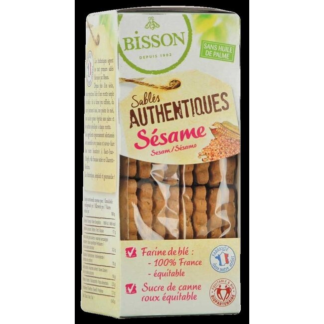 Envie d'un en-cas qui sort de l'ordinaire ? Vous méritez un pur moment de plaisir ! Optez pour les Sablés au Sésame Authentiques Bio de Bisson : des biscuits biologiques délicieusement croustillants au goût authentique. Une gourmandise responsable pour toute la famille, élaborée avec soin. Votre choix conscient pour un instant de qualité. À découvrir dès maintenant.