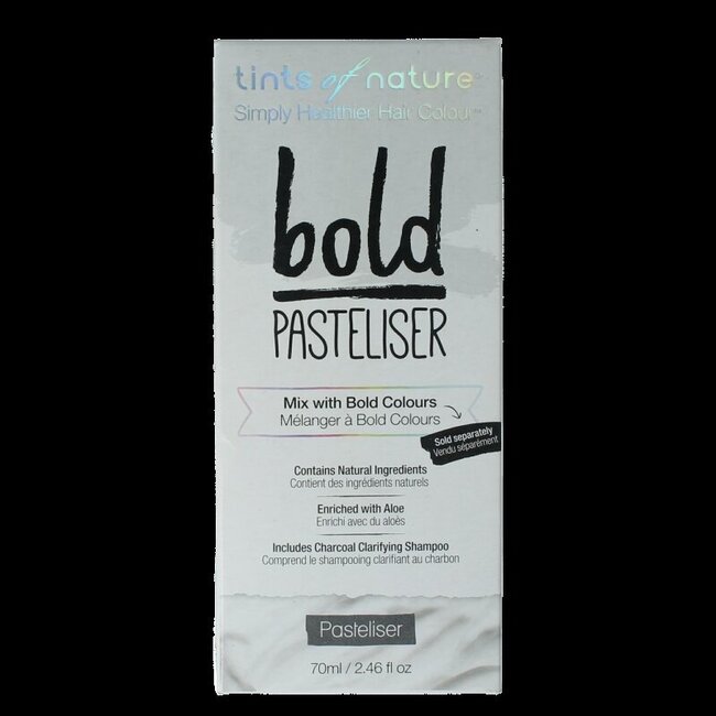 Wees gedurfd, wees kleurrijk met Tints of Nature. Creëer je eigen op maat gemaakte pasteltint door te mengen met je favoriete semi-permanente Bold Colours (apart verkocht). Onze Bold Pasteliser bevat natuurlijke en gecertificeerde biologische ingrediënten.