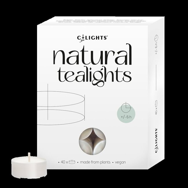 Optez pour une atmosphère responsable avec C-lights. En tant que premières bougies chauffe-plat naturelles au monde, elles transforment votre expérience de la chaleur et de la lumière. Fabriquées à partir de cire 100 % végétale issue de cultures responsables et dotées d'un godet innovant d'origine végétale, elles garantissent une combustion propre. Profitez d'une flamme calme et claire pendant six heures, sans suie noire ni vapeurs toxiques telles que le toluène ou le benzène. Vous respirez un air plus pur et créez un intérieur plus sain.