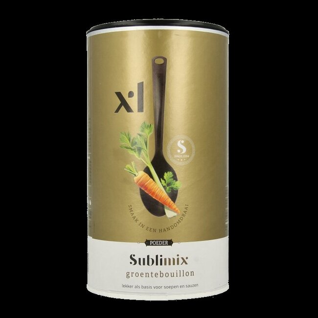 Sel de mer, maltodextrine, extrait de levure, amidon, 1,9 % oignon, 1,7 % carottes, herbes (contiennent des feuilles de CÉLERI), épices (contiennent des graines de CÉLERI), arôme naturel, huile de tournesol, 0,3 % poireau, 0,02 % poudre d'oignon grillé