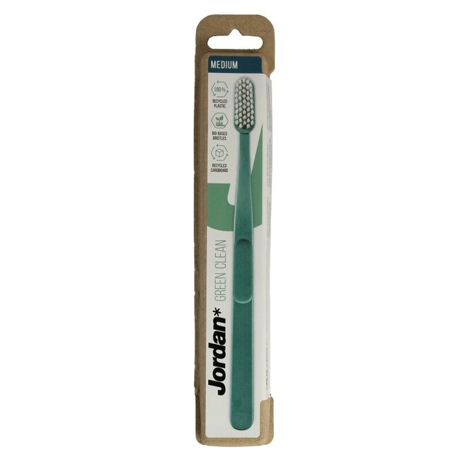 Pour une bouche et une planète propres : la brosse à dents Jordan Green Clean Medium. Avec son manche 100 % recyclé et ses poils biosourcés, vous brossez vos dents de manière responsable. VitAdvice : des soins bucco-dentaires de qualité experte jusqu'à 30 % moins chers. Un choix intelligent et durable pour toute la famille. Votre partenaire de santé de confiance !