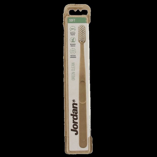 Souhaitez-vous des soins bucco-dentaires responsables ? La brosse à dents Jordan Green Clean souple offre une solution adaptée : un manche recyclé, des poils d'origine biologique et un emballage recyclé. Brossez vos dents de manière efficace et écologique. VitAdvice propose une qualité fiable et abordable pour votre famille. Optez pour un sourire frais et une planète plus propre.