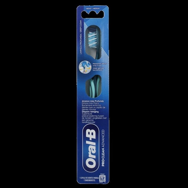 Vous souhaitez une bouche parfaitement propre ? La brosse à dents Oral-B Pro-Clean Advanced élimine jusqu'à deux fois plus de plaque dentaire grâce à ses poils croisés uniques et son gratte-langue pour une haleine fraîche. Bénéficiez de l'expertise en laquelle les dentistes ont confiance. Un choix judicieux pour la santé bucco-dentaire de toute votre famille.