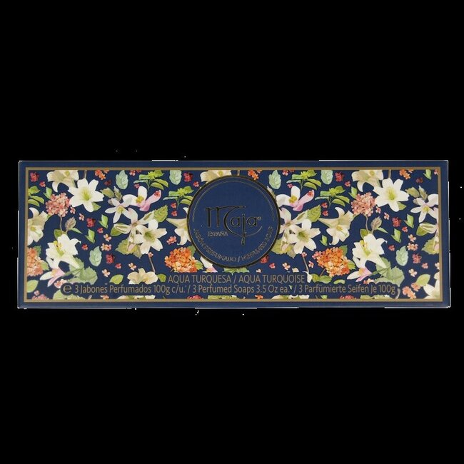 Le coffret cadeau de savons Maja Aqua Turquesa propose un soin rafraîchissant pour une peau douce. Ces trois savons de luxe associent des notes florales et aquatiques pour procurer une sensation de fraîcheur tout au long de la journée. Ce produit constitue un choix sans plastique pour l'entretien de la peau.