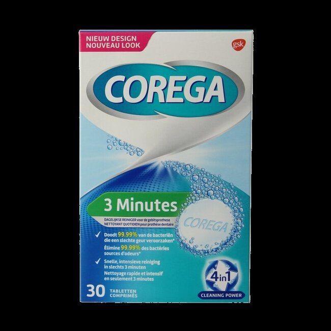 Retrouvez cette fraîcheur quotidienne et ce sentiment d'insouciance avec les tablettes nettoyantes Corega 3 Minutes. Ces tablettes puissantes s'attaquent aux problèmes les plus courants, vous permettant de vivre, rire et parler pleinement.