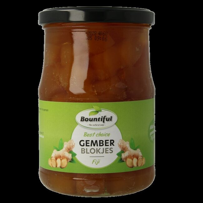 Les cubes de gingembre des Fidji Bountiful sont issus de jeunes plants de gingembre frais des îles Fidji. Ce gingembre au sirop est extrait du rhizome, ce qui lui confère une faible teneur en fibres et une texture tendre. Sa saveur est plus douce et moins piquante que celle du gingembre ordinaire, convenant ainsi à toute la famille.