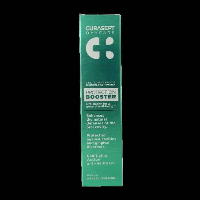 Le dentifrice en gel aux herbes Curasept Daycare renforce les défenses naturelles de votre cavité buccale, protège efficacement contre les caries et les problèmes de gencives, et assure une haleine fraîche durable. Retrouvez le confort d'une dentition saine et forte pour toute la famille, jour après jour.