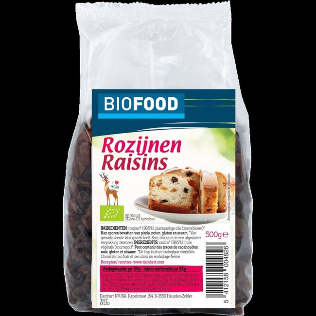 Les raisins secs biologiques Damhert constituent un en-cas naturel pour toute la famille. Ils peuvent être consommés seuls ou utilisés pour enrichir diverses préparations culinaires. Ce produit est issu de l'agriculture biologique et conditionné de manière durable.