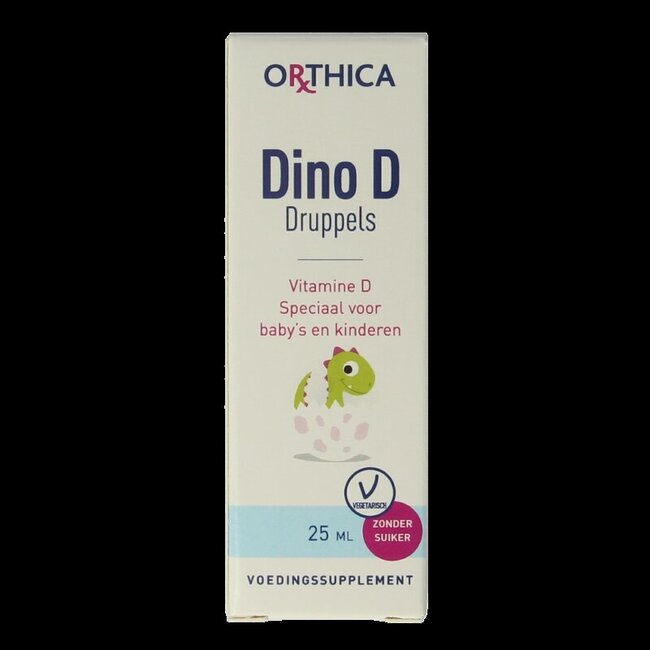 Souhaitez-vous des os solides et une immunité renforcée pour votre enfant ? Les gouttes Orthica Dino D apportent 10 mcg de vitamine D3, essentielle pour les enfants de 0 à 4 ans. Goût neutre, facile à mélanger. Avec VitAdvice, vous bénéficiez d'un accompagnement d'experts, d'un prix 30 % plus avantageux et d'une livraison sans plastique. Le meilleur départ pour votre famille. Faites confiance à VitAdvice, votre partenaire vitalité.
