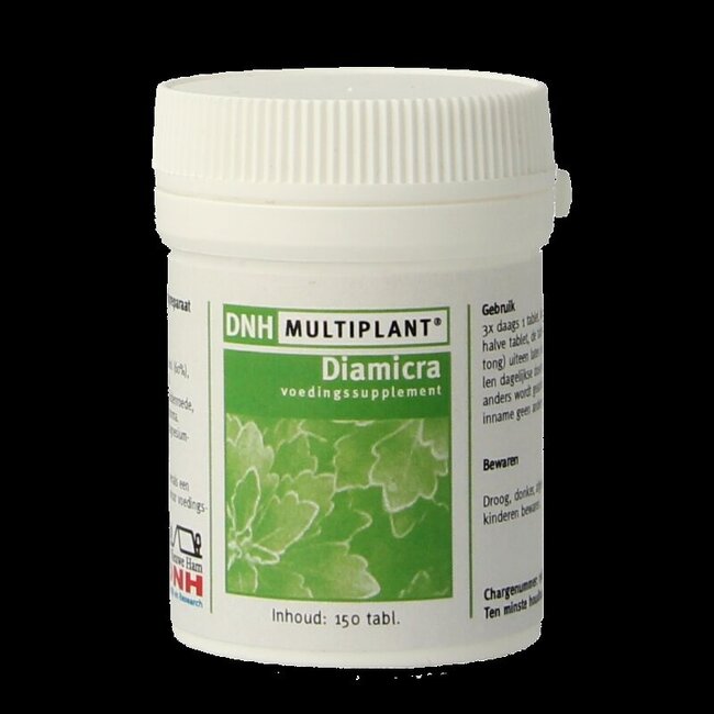 Ingrédients : Stéarate de magnésium (lubrifiant), Alcool (60 %), Fréquence ultra-moléculaire de diamicra. Extrait de : Myrtille, Haricot vert, Verge d'or, Griffe de chat, Oignon. Arôme : arôme d'orange. Agents de charge : Cellulose microcristalline, stéarate de magnésium.