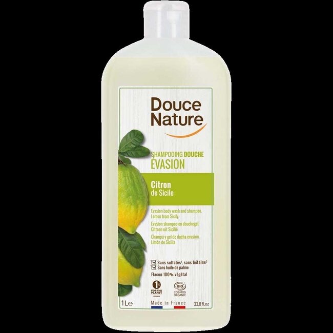 Voici la solution : Douce Nature Gel douche & shampooing Évasion citron de Sicile bio. Ressentez la fraîcheur tonifiante du citron de Sicile biologique qui nettoie et soigne en douceur les cheveux et la peau de toute la famille. Profitez d'une sensation de vitalité en choisissant une qualité reconnue par les experts.
