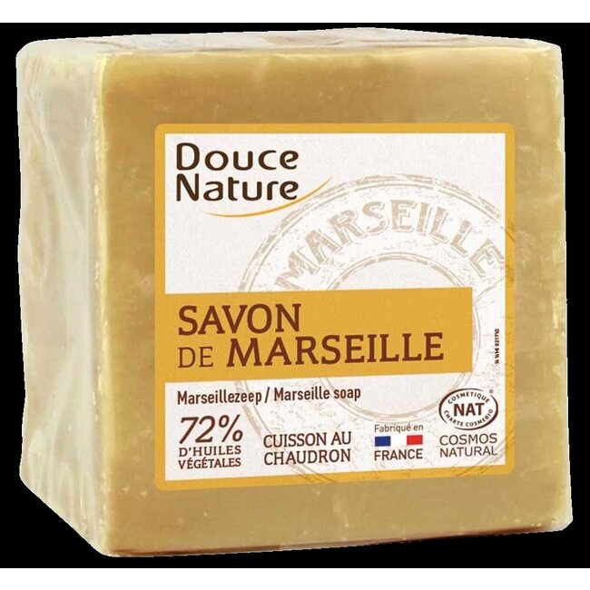 Le savon de Marseille Douce Nature à l'huile de palme biologique (600 g) nettoie la peau en douceur et convient à l'usage quotidien de toute la famille. Ce produit est expédié sans emballage plastique.