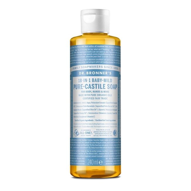 Une solution pure pour de multiples usages. Le savon liquide Dr. Bronner's Baby Mild est un nettoyant biologique 18-en-1 pour la famille et la maison. Il est doux pour la peau et formulé sans composants synthétiques. Découvrez un soin de qualité et une option sans plastique via VitAdvice. Un choix responsable et économique.