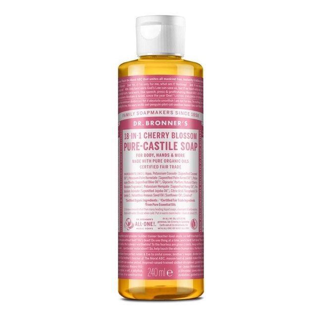 Pour ceux qui recherchent un soin de la peau sans compromis, découvrez le savon liquide Dr. Bronner's aux fleurs de cerisier : un luxe pur et naturel. Ce produit offre une sensation de douceur et un parfum biologique chaleureux. Fort de 150 ans d'expertise, il est idéal pour toute la famille.