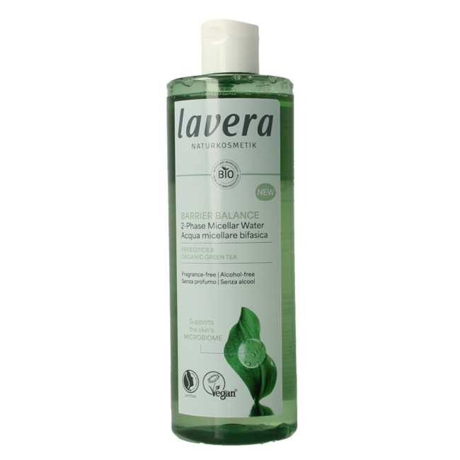 Eau micellaire biphasée lavera Barrier Balance. L'eau micellaire biphasée lavera soutient le microbiome cutané et élimine en douceur même le maquillage waterproof. Sans parfum ni alcool. Convient aux végétariens et aux végétaliens. L'eau micellaire innova Lire plus.