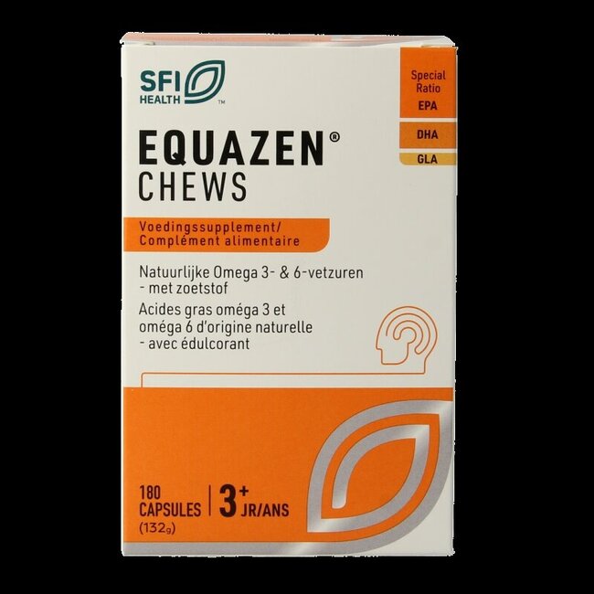 Développement sain et vitalité pour toute la famille ? Equazen Chews (180 capsules) apporte des acides gras essentiels oméga 3 et 6 dans de délicieuses capsules à mâcher à la fraise, sans odeur de poisson. Idéal pour la fonction cérébrale, la vision et la santé cardiaque, dès 3 ans. Profitez de la qualité premium de VitAdvice : 30 % moins cher que la moyenne, avec une expédition responsable sans plastique. Faites confiance à un bien-être soutenu par des experts et faites aujourd'hui un choix judicieux pour votre santé. Boostez votre vitalité !