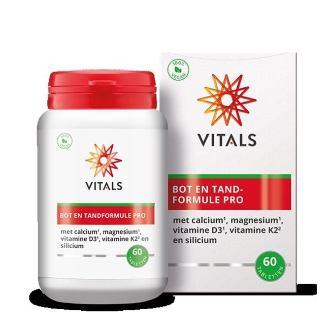 La qualité des ingrédients est essentielle pour une formule destinée aux os et aux dents. Formule Os et Dents Pro contient du bisglycinate de calcium et de magnésium liés à des acides aminés d'Albion Minerals. Ces minéraux TRAACS® sont reconnus pour leur absorption et leur tolérance. La stabilité des vitamines dans le produit fini est également importante. La vitamine K2 est souvent instable, surtout en présence de minéraux. Le producteur norvégien Balchem a développé la matière première K2VITAL™ DELTA qui protège la K2 via un processus de micro-encapsulation breveté. Cela garantit la stabilité, même avec des composés minéraux agressifs. Vitals a choisi K2VITAL™ DELTA après des tests de stabilité approfondis.