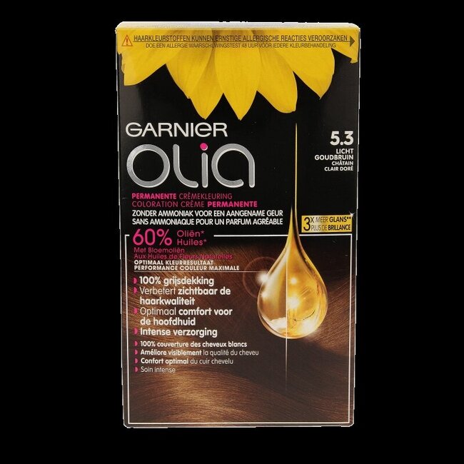 Vous souhaitez des cheveux éclatants et sains ? La coloration Garnier Olia 5.3 Châtain Doré offre une couleur intense, sans ammoniaque et enrichie en huiles de fleurs. Elle apporte 3x plus de brillance, une couverture à 100 % des cheveux blancs et une amélioration de la qualité du cheveu. Un choix judicieux de VitAdvice, votre partenaire de confiance. Profitez d'une chevelure sublime, sans compromis.