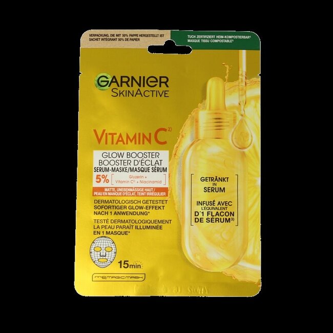 Découvrez le masque en tissu Garnier SkinActive à la vitamine C : un boost d'hydratation approuvé par les experts en seulement 15 minutes. Enrichi en vitamine C et en acide hyaluronique, ce masque procure un éclat souple et lumineux. Il convient parfaitement aux peaux sensibles et à toute la famille.