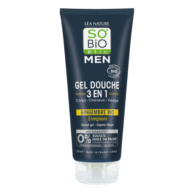 Le gel douche 3-en-1 au gingembre So Bio Etic permet de nettoyer le corps, le visage et les cheveux. Le gingembre biologique procure un effet tonifiant. Formulé sans sulfates, parabènes ni microplastiques, ce produit propose un soin respectueux de l'environnement. Cette solution est approuvée par les experts de VitAdvice.