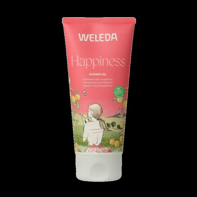 Découvrez le gel douche Weleda Happiness édition limitée. Cette formule 100 % naturelle, aux parfums de pamplemousse, de mandarine et de citron vert, transforme instantanément votre humeur. Profitez d'un nettoyage végétal doux qui laisse la peau souple et douce. Tolérance cutanée prouvée dermatologiquement et 0 % de microplastiques.