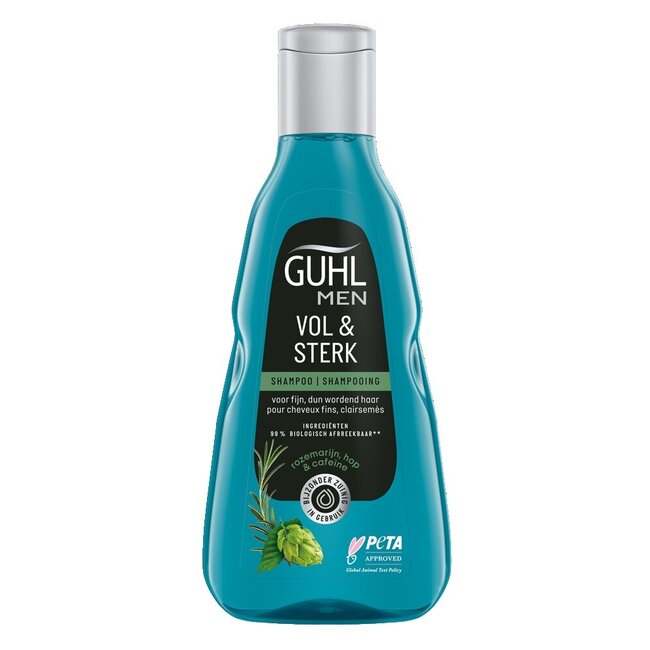 Les cheveux fins et clairsemés vous préoccupent ? Optez pour un résultat immédiat. Le shampooing Guhl Man Volume & Force, élaboré par des experts avec du romarin, du houblon et de la caféine, nettoie en douceur et renforce les fibres capillaires pour un volume et une force visiblement accrus. Durable, végan et sans silicone. Profitez de cette qualité premium à un prix 30 % plus avantageux via VitAdvice. Faites le choix de cheveux pleins de vitalité et d'assurance.
