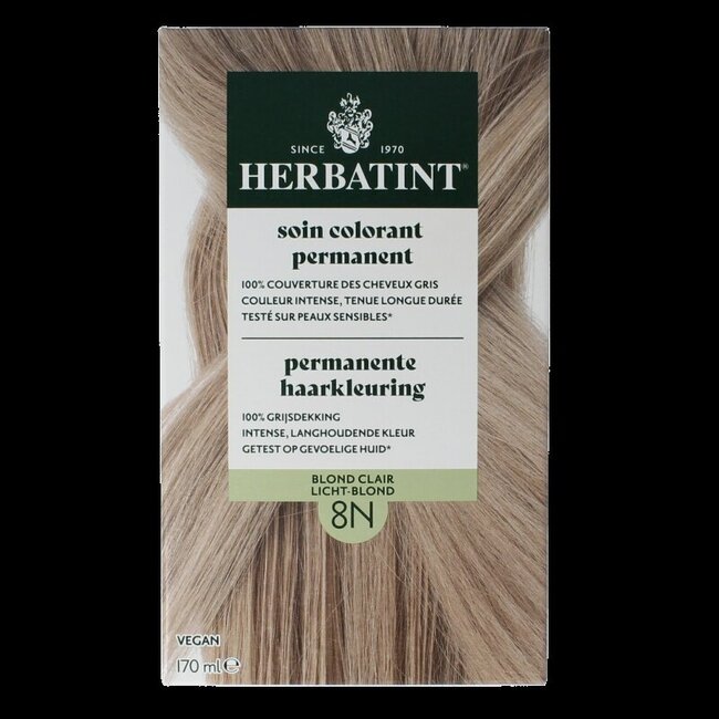 Vous rêvez de cheveux éclatants et sains, sans ammoniaque et à un prix abordable ? Herbatint 8N blond clair offre une couverture à 100 % des cheveux gris et respecte vos cheveux grâce à 8 herbes biologiques. Sentez-vous plein de vitalité ! Chez VitAdvice : prix avantageux, expédition sans plastique, conseils d'experts pour toute la famille. Offrez à vos cheveux les soins qu'ils méritent. Commandez dès maintenant !