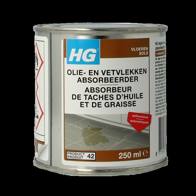 L'absorbeur de taches d'huile et de graisse HG est conçu pour éliminer les taches sur les carrelages, le marbre, la terre cuite, la pierre silico-calcaire, le ciment et le béton. Ce produit spécialisé extrait l'huile ou la graisse directement du support pierreux. Il agit de manière autonome, permettant de nettoyer les surfaces sans frottage intensif.