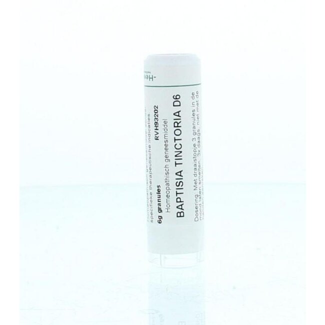 Le Homeoden Heel Baptisia tinctoria D6 est un médicament homéopathique utilisé selon les principes de la méthode homéopathique, sans indication thérapeutique spécifique. Ce produit contient du Baptisia tinctoria D6 comme substance active, complété par du saccharose. Pour une application responsable, nous vous conseillons de toujours consulter un médecin ou un thérapeute au préalable.